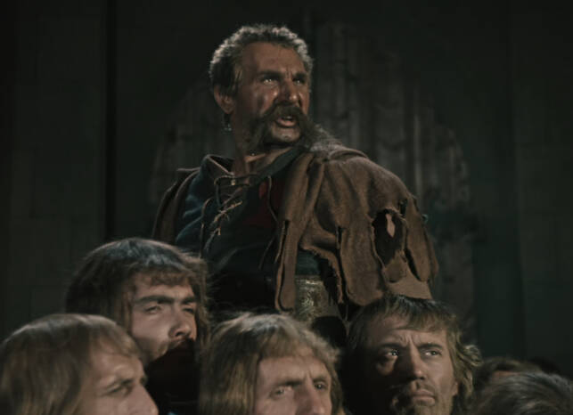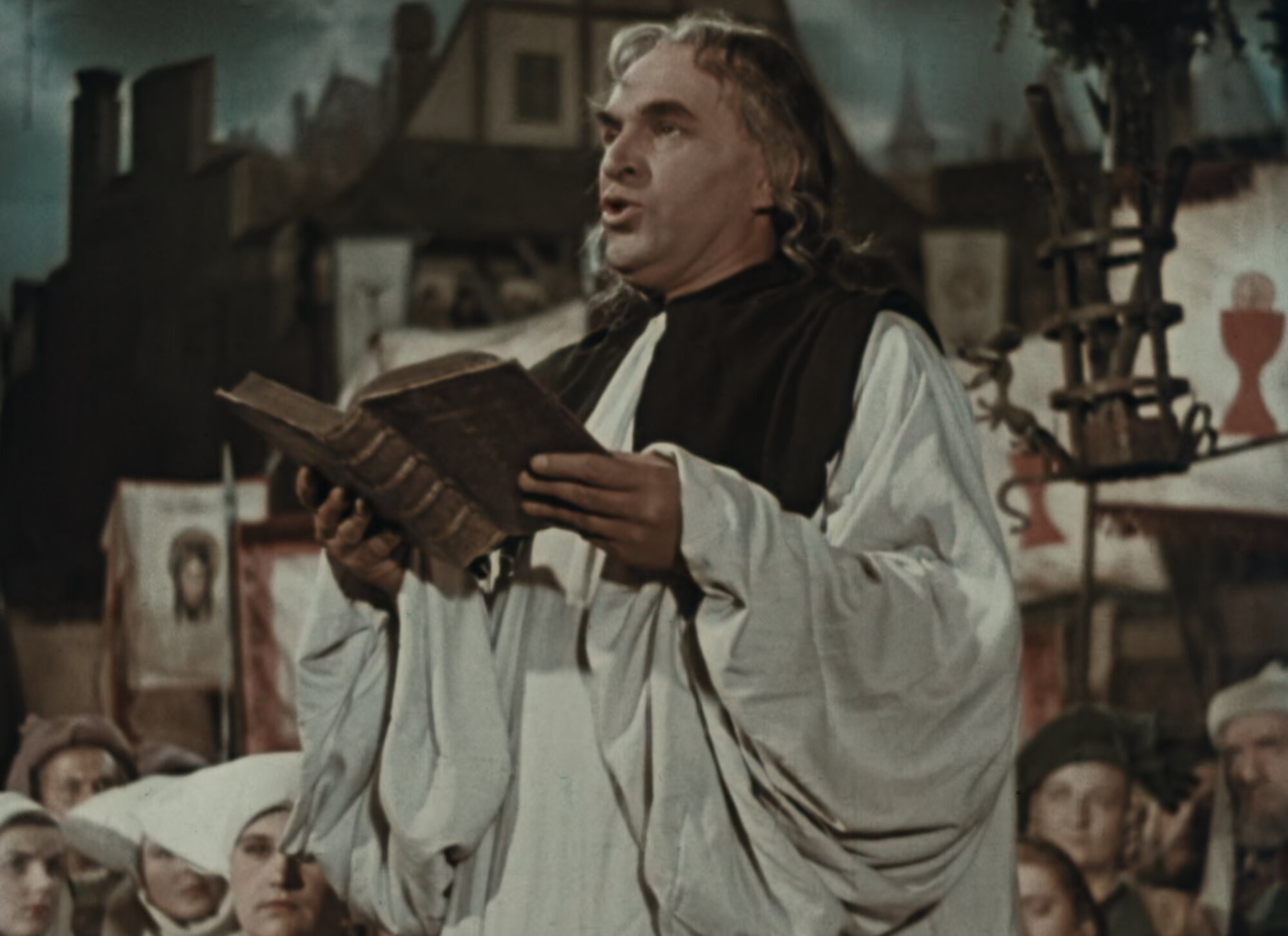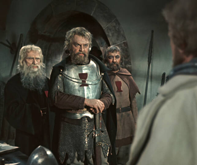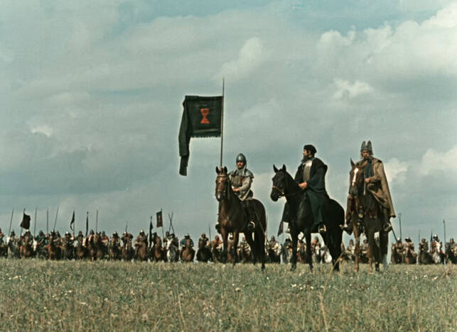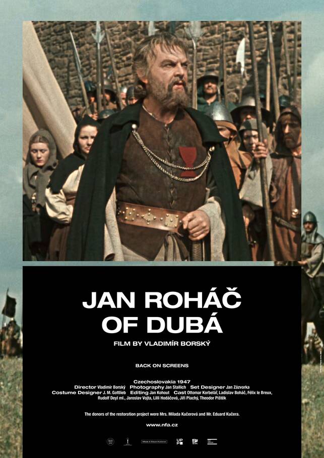 The first feature-length colour film produced in Czechoslovakia, Jan Roháč of Dubá was a long-awaited project intended to demonstrate the technical sophistication of the nationalised film industry, while also boosting national self-confidence with its message. In keeping with post-war ideology, the titular Hussite leader is portrayed as a symbol of Czech resistance to German oppression. In the film, based on a play by Alois Jirásek, Hussitism is not portrayed purely as a religious movement, but rather above all as a social movement which contributed to social uprising and national liberation. The filming itself was preceded by careful preparation. Director Vladimír Borský, who also co-wrote the screenplay, studied Jirásek’s play and extant written and pictorial material related to the Hussite Wars. Period costumes had to be sewn for the actors and several hundred extras, and sets were also built. The imperial chamber, coronation hall, Old Town Hall council chamber and the castle of Sion were created at the Barrandov and Radlice studios. Through previously working with foreign productions, architect Jan Zázvorka, camera operator Jan Stallich and Borský himself already had experience with colour film, which was a prerequisite for their selection. This epic film, which follows the final phase of the struggle between the remnants of the Hussity Army and King Sigismund, premiered in the three largest cinemas in Prague at the end of March 1947.Jan Roháč of Dubá paved the way for the historical themes which would dominate the silver screen in subsequent years. By November 1948, the so-called “Jirásek Campaign” was launched, with the aim of promoting Alois Jirásek’s other works. But while the revival of the Hussite tradition after the war was relatively spontaneous, the topic would later mainly become part of fulfilling the directives of the Communist Party.