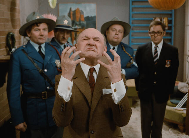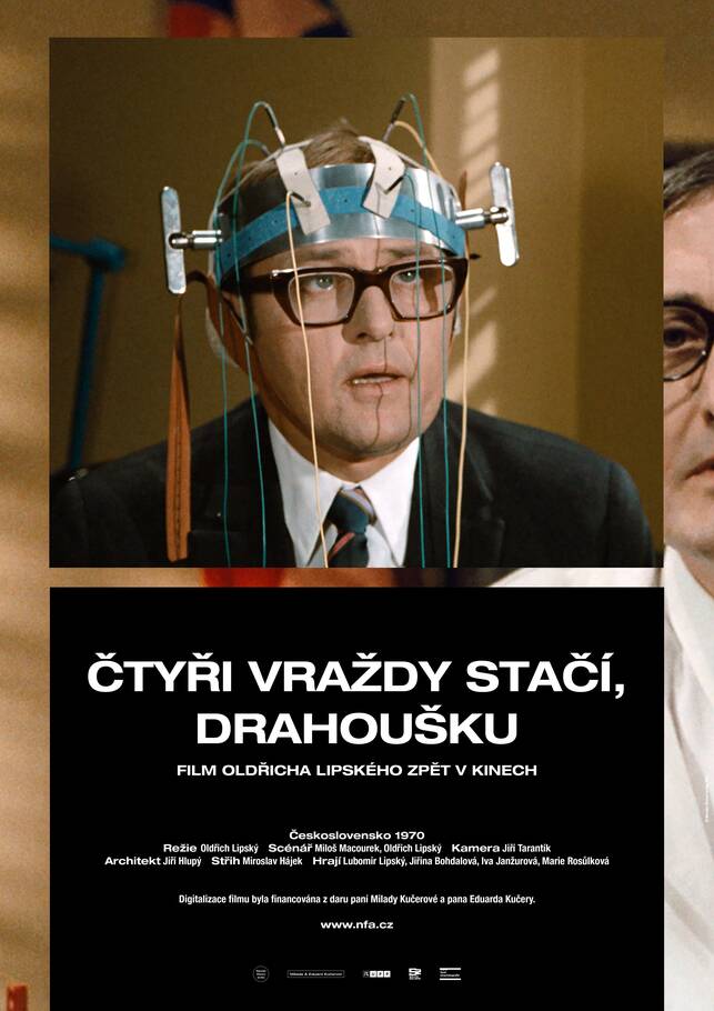 Writer and film screenwriter Miloš Macourek contributed to two memorable gangster comedies - Who Wants toKillJessie (1966), directed by Václav Vorlíček, and FourMurdersAre Enough,Darling( 1970), directed by Oldřich Lipský. In both cases, the personality of the artist Kája Saudek also entered the play. While in Jessie the ordinary Czech world is infected with characters and elements from the "American" cartoon series, Oldřich Lipský's film unfolds entirely within the framework of comic exaggeration. Both films use embedded cartoon elements, but Macourek and Lipsky have created a complete fictional world set in the fictional "Western" country of Bonzania. The comic-cartoon crazy comedy rampantly and at a brisk pace, teems with visual and formal ideas and absurd dialogue. Behind the barrage of gags, however, there is a palpable desire to escape - at least in comic fiction - behind the Iron Curtain of the emerging normalising reality.